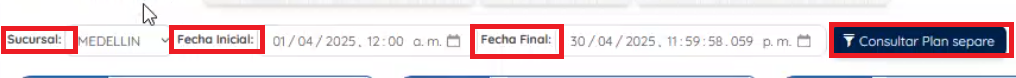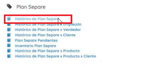 Vas al menú lateral izquierdo, Informes y buscamos el Histórico de Plan Separe.