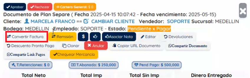 En este manual aprenderás cómo convertir un plan separe a factura.