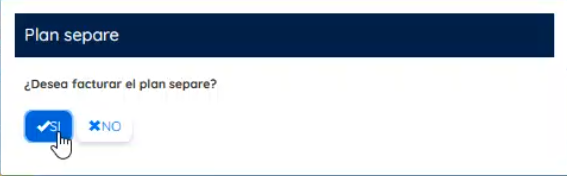 Ahora sí, volvemos a convertir el Plan Separe a factura, le damos en Sí, elegimos el consecutivo, y le damos en Aceptar.